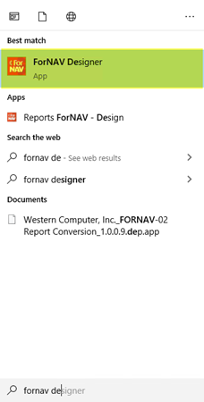 With that done, you can now edit your layout. To open a layout using ForNAV Designer, start by opening the designer itself: