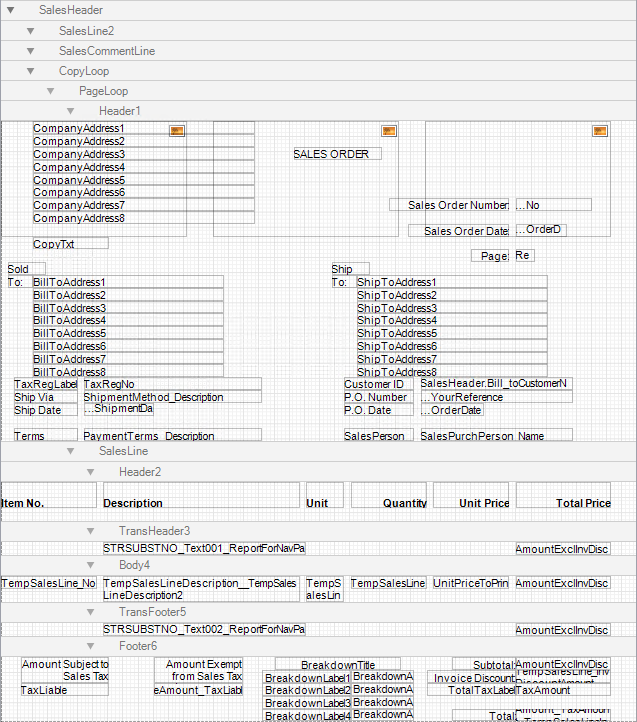 Let's assume your converted report works fine, but you want to add a field to the report header. Unfortunately, even if you modify the report dataset by adding a new field, you will not have access to any new fields until you have directly accessed the new dataset through the ForNAV designer. In other words, you cannot publish a change to the dataset and then add a new field using custom report layouts. That would be nice, but unfortunately, that's simply not how it works.