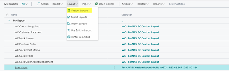 Once the revised app is installed, you can navigate to [ForNAV] then [MyReports]. Since you have modified the report's base layout, the custom layout you created earlier is now superseded and can no longer be used. Well"¦it can"¦but it won't contain the change you just made to your layout.