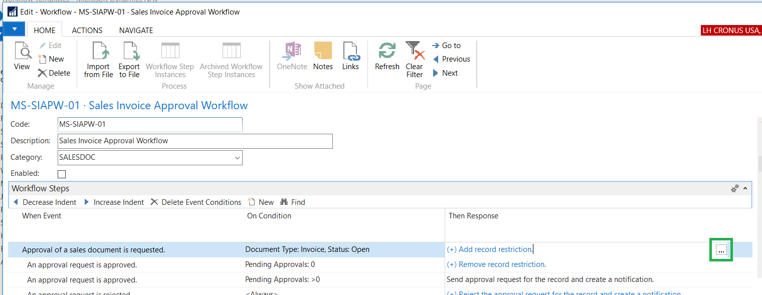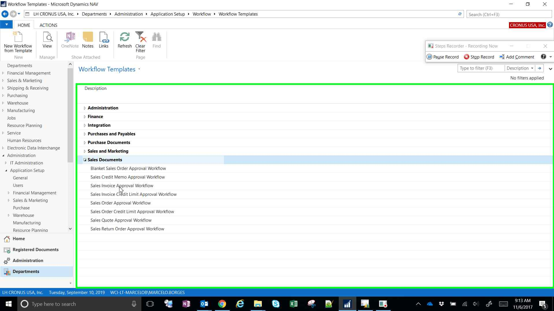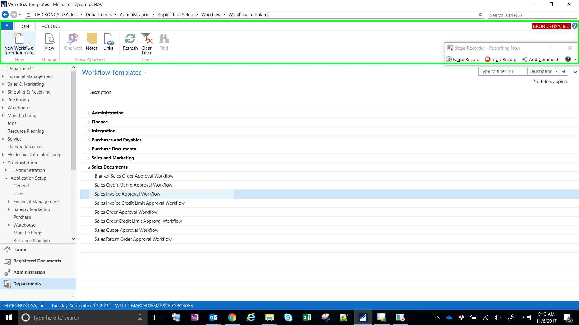 Left click the arrow sign to the left of Sales Documents in your Workflow Templates list to expand it and then left click Sales Invoice Approval Workflow to select it.