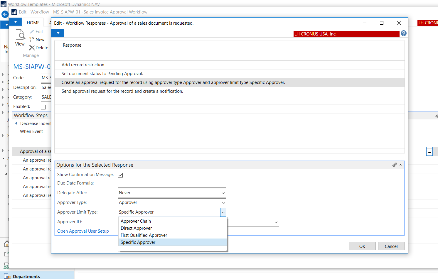 Under Options, click on Approver Limit Type and select Specific Approver.