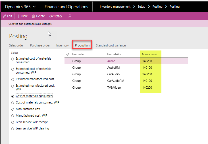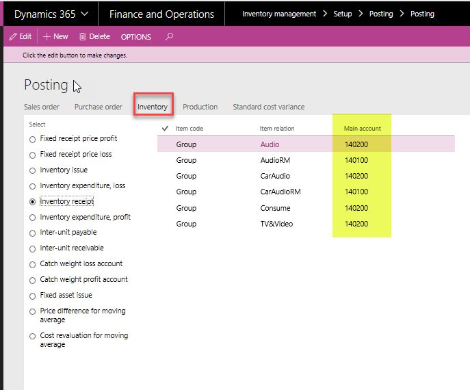 Inventory transactions can have different posting profiles based on where the transaction originates (i.e. sales order, purchase order, inventory transfer). Dynamics 365 for Finance and Operations allows you the flexibility to designate the posting account based upon the transaction origin AND the inventory group or item.