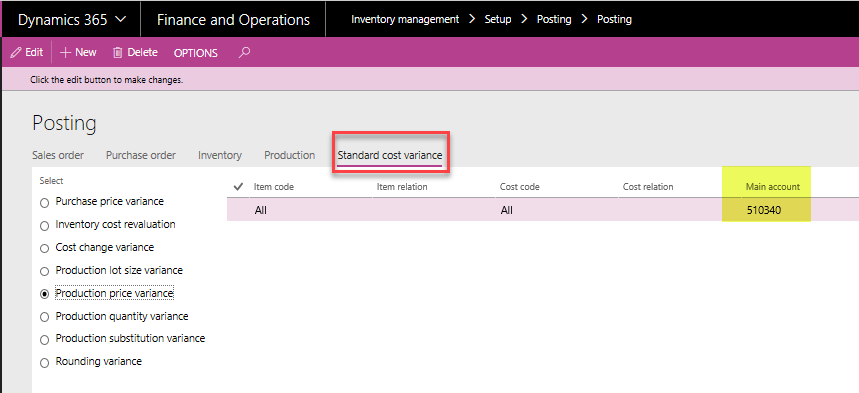 Using this posting profile setup, an organization performs a one-time setup for all inventory posting and then have complete control over all postings from inventory transactions, regardless of the transaction origin.