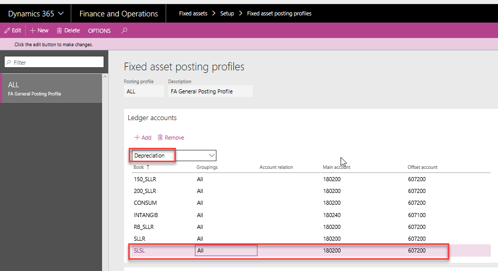 The posting profiles are generally used to have different posting profiles by Asset Group. The demo data in USMF would not be meaningful to finance users. I would suggest modifying the posting profile to show it with different accounts by Asset Group and flipping the following two paragraphs.