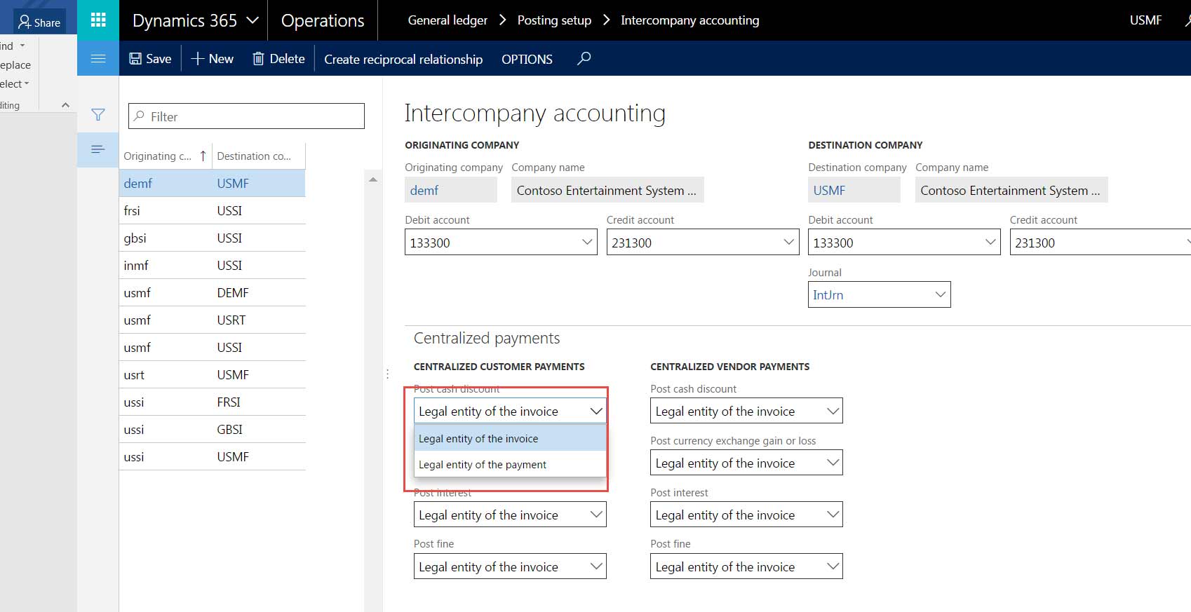 1.Complete Intercompany Accounting Setup. In the previous blog Multi-Company Customer and Vendor Payments – Part 2 Intercompany Accounting, we partially configured Intercompany Accounting. To use Centralized Payments, we must now finish the setup. Go to General Ledger > Posting Setup > Intercompany Accounting.